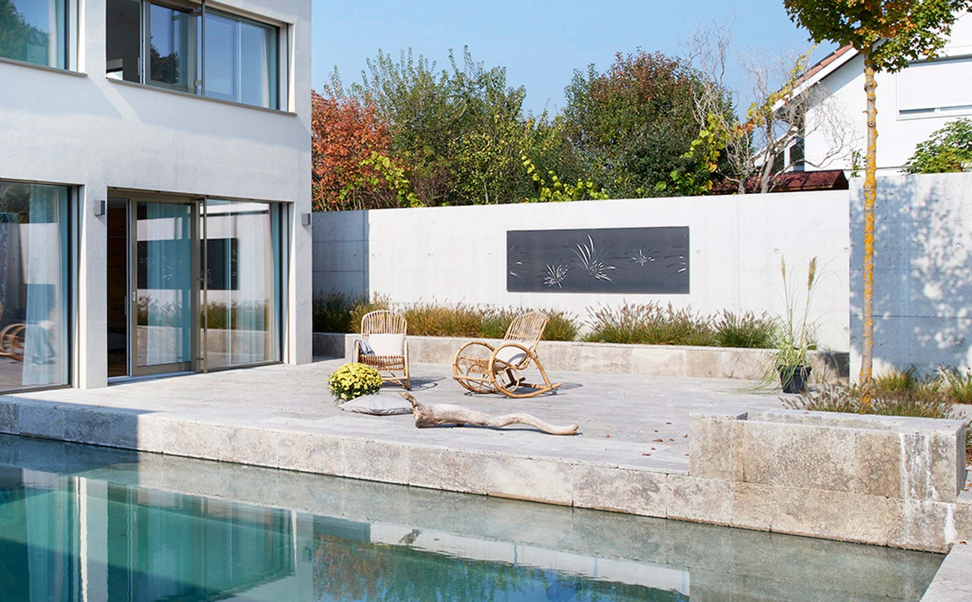 MURO Wandbild aus 3 mm Cortenstahl und Outdoor LED Beleuchtung