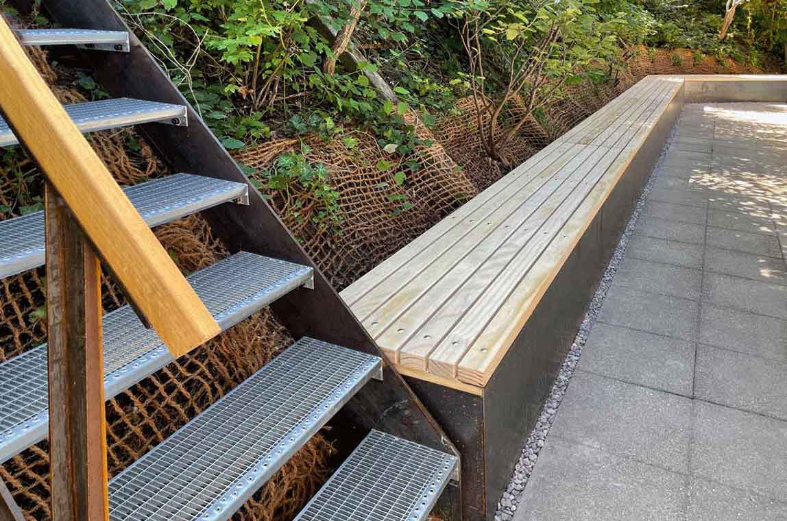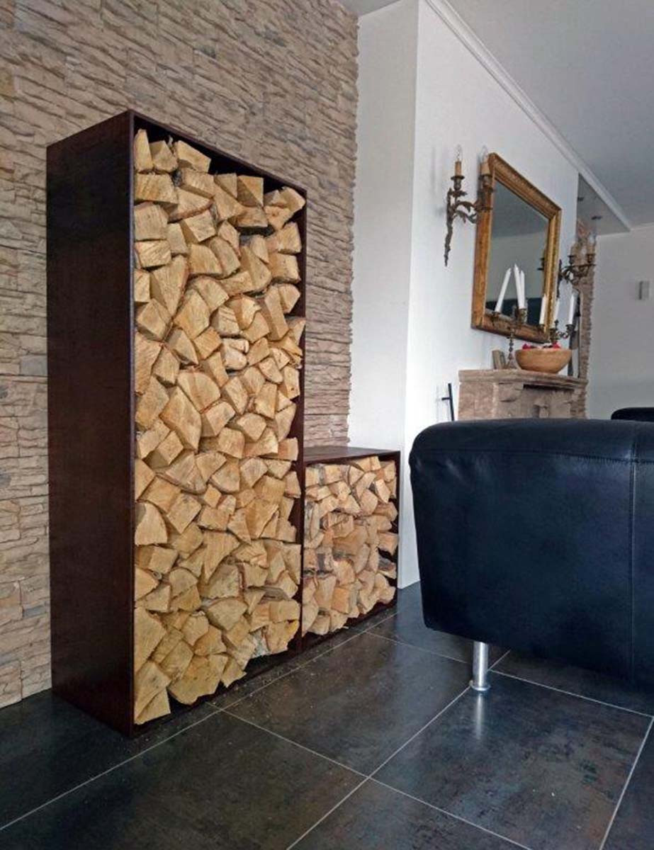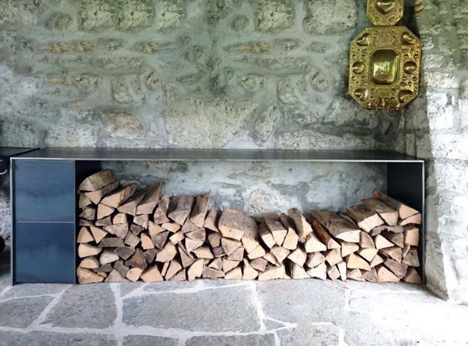 Holzlager aus 10mm Cortenstahl und geölter Rostpatina
