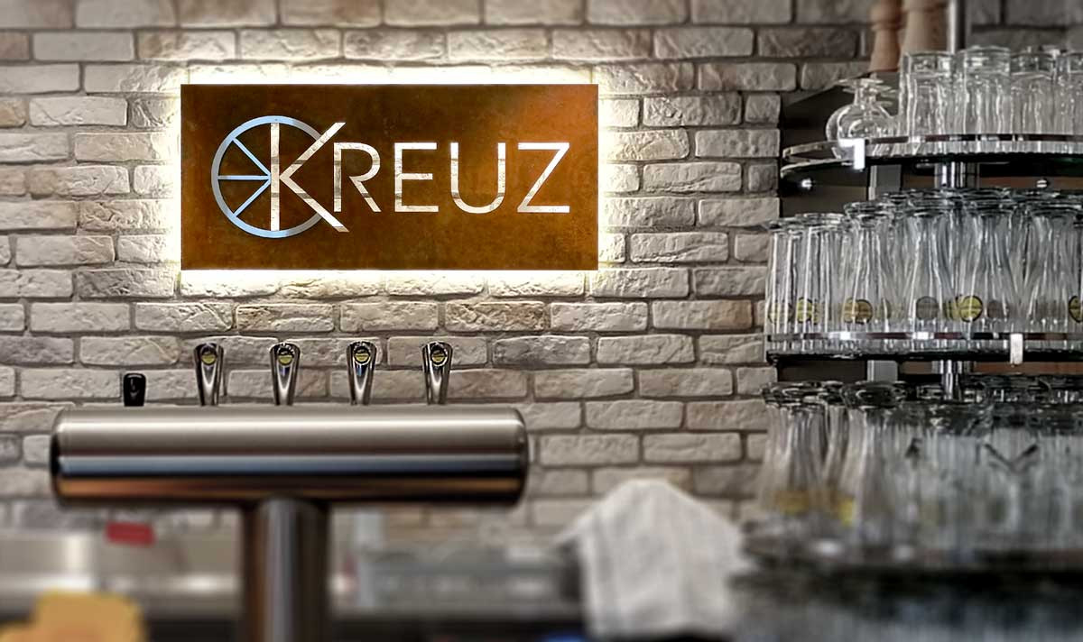 Wand-/Logobild aus 2 mm Edelstahlblech mit Folie beklebt