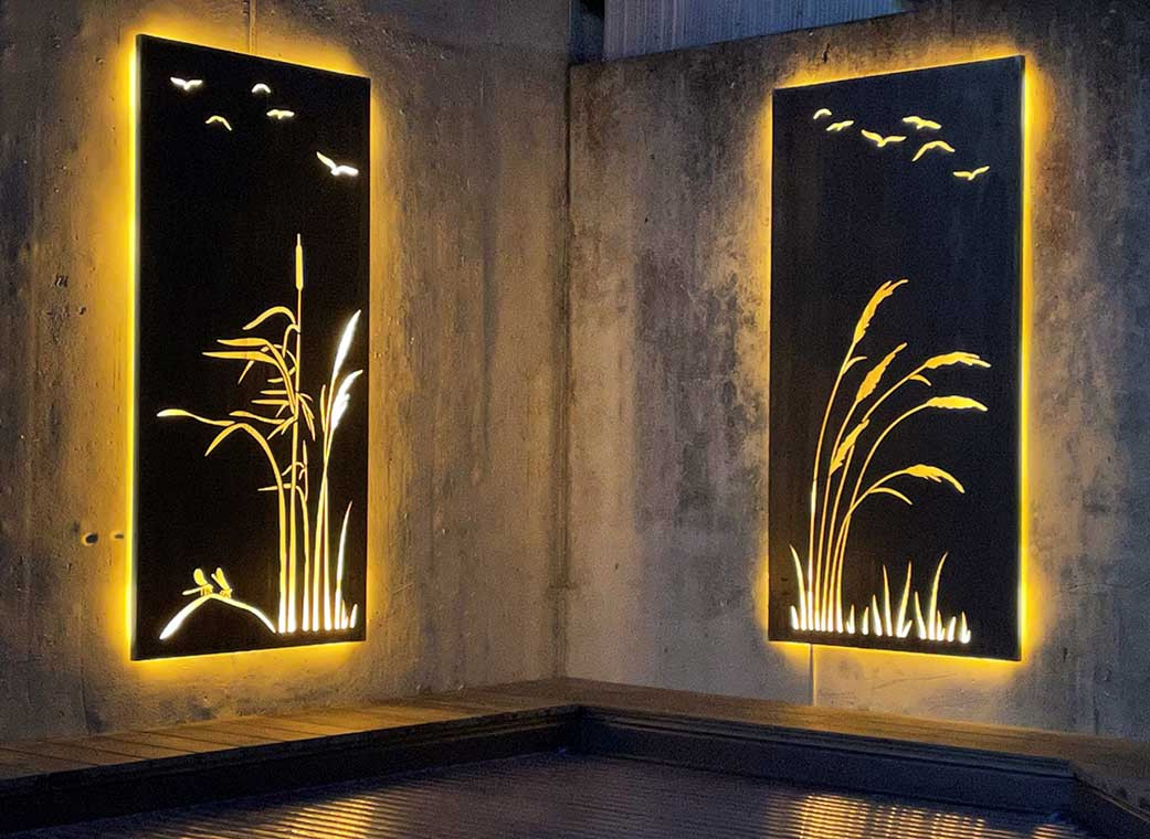 Wandbild aus 2 mm Cortenstahl hinterleuchet