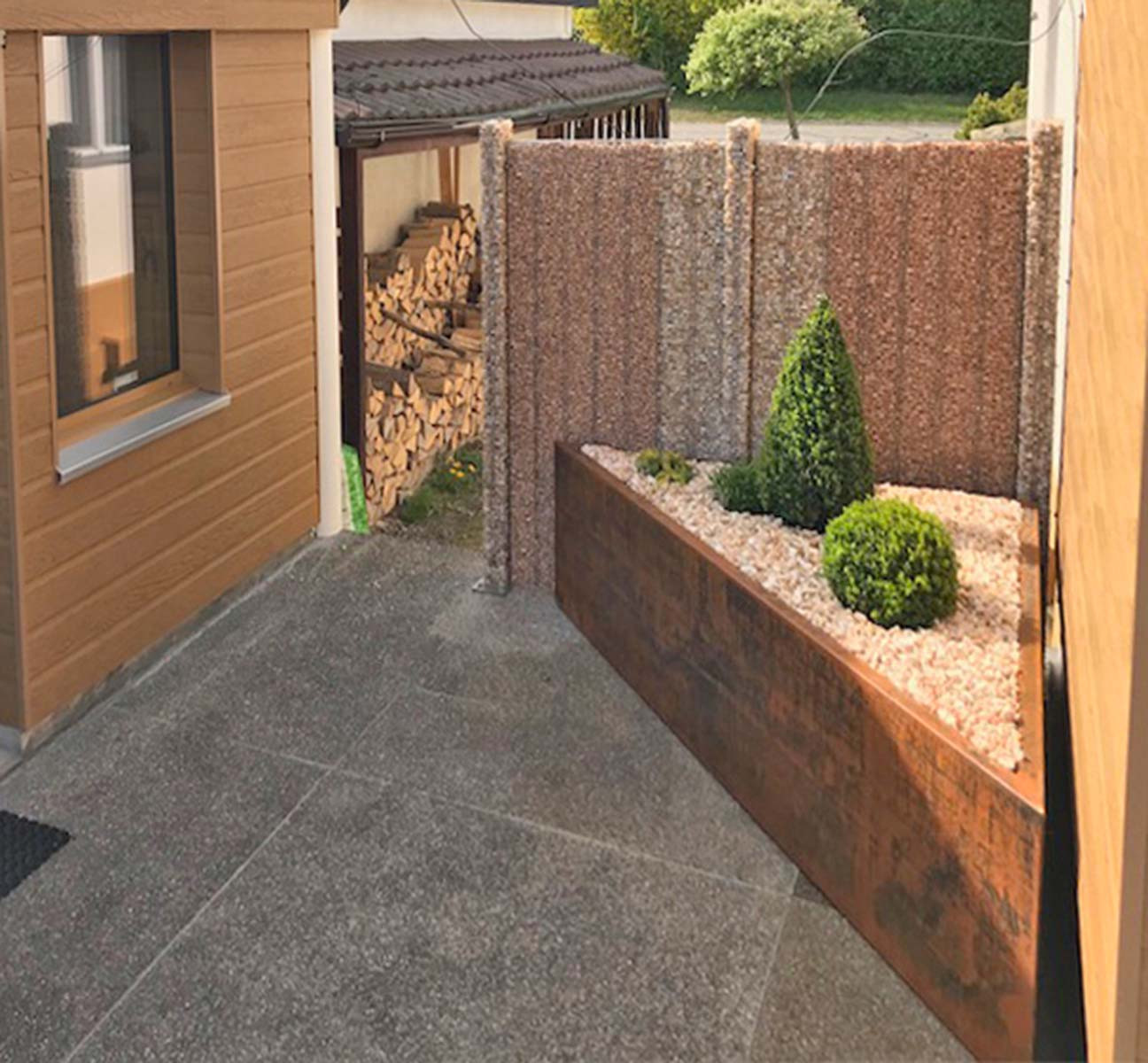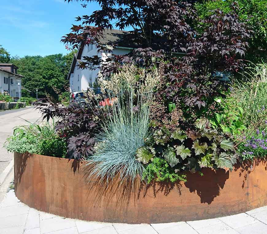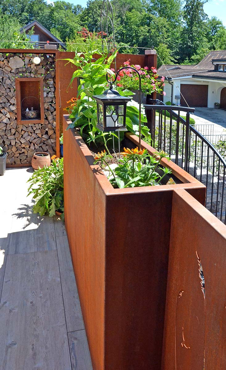 PLANTO aus 3 mm Cortenstahl fix verschweisst