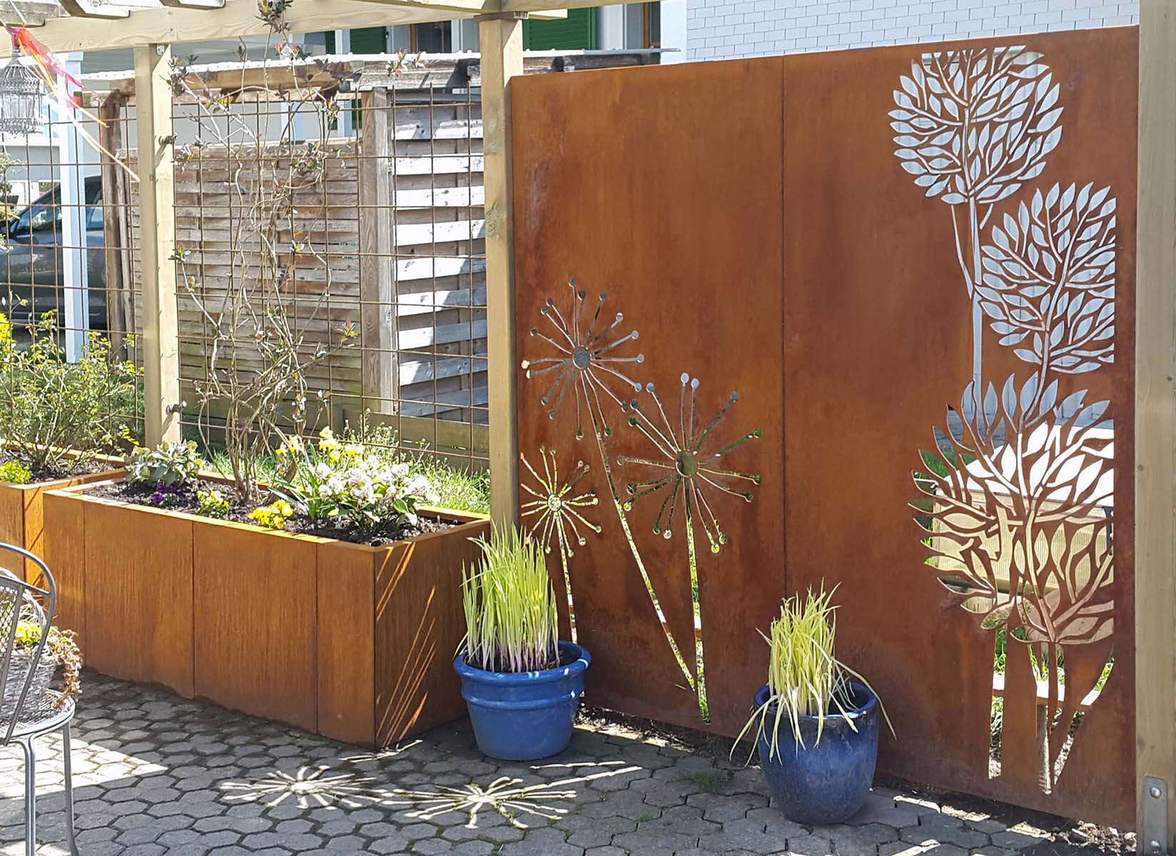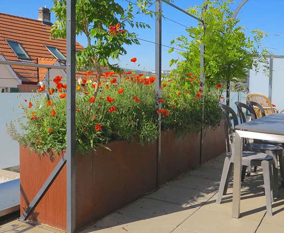 PLANTO aus 2 mm Cortenstahl Modulen verschraubt