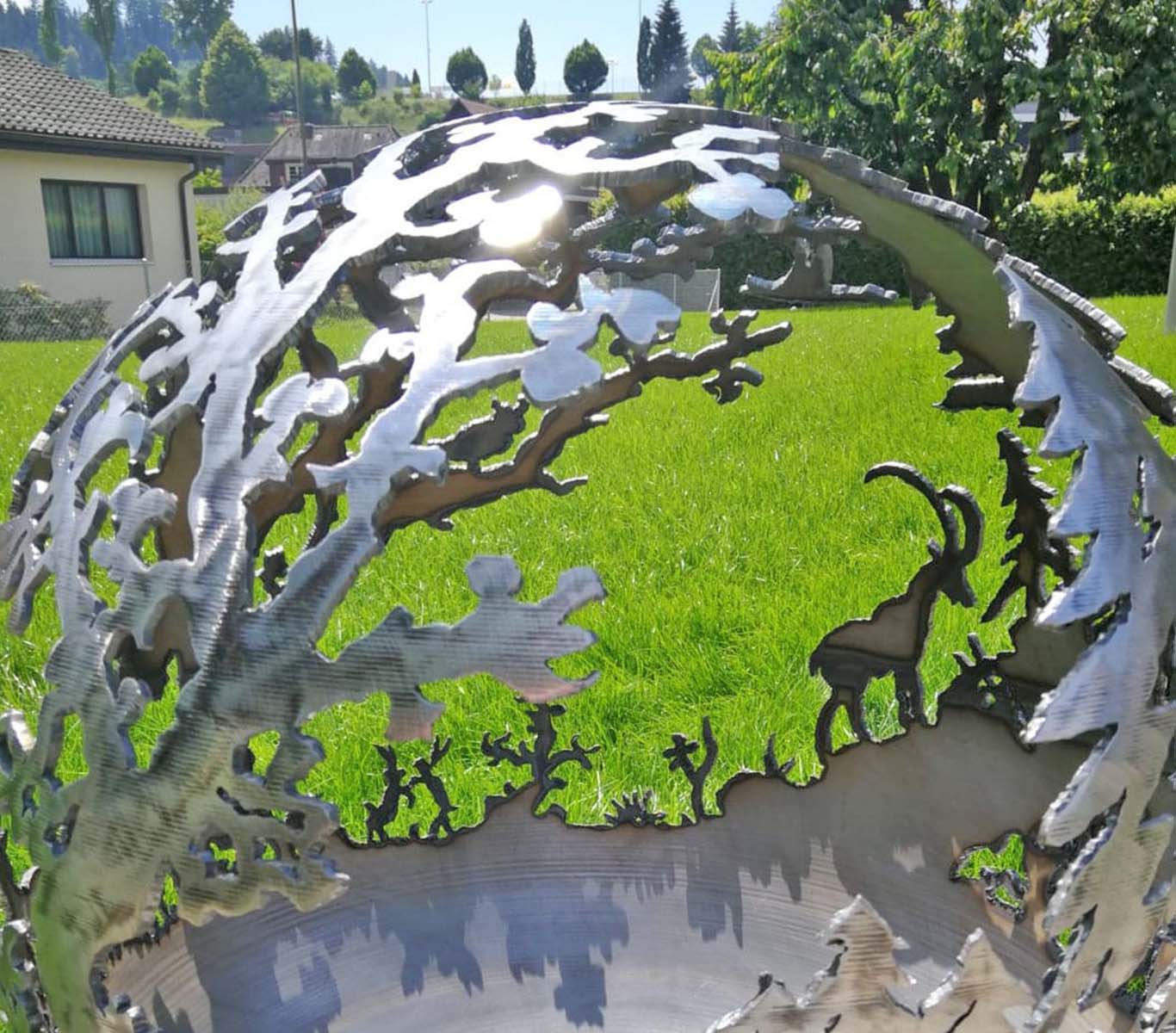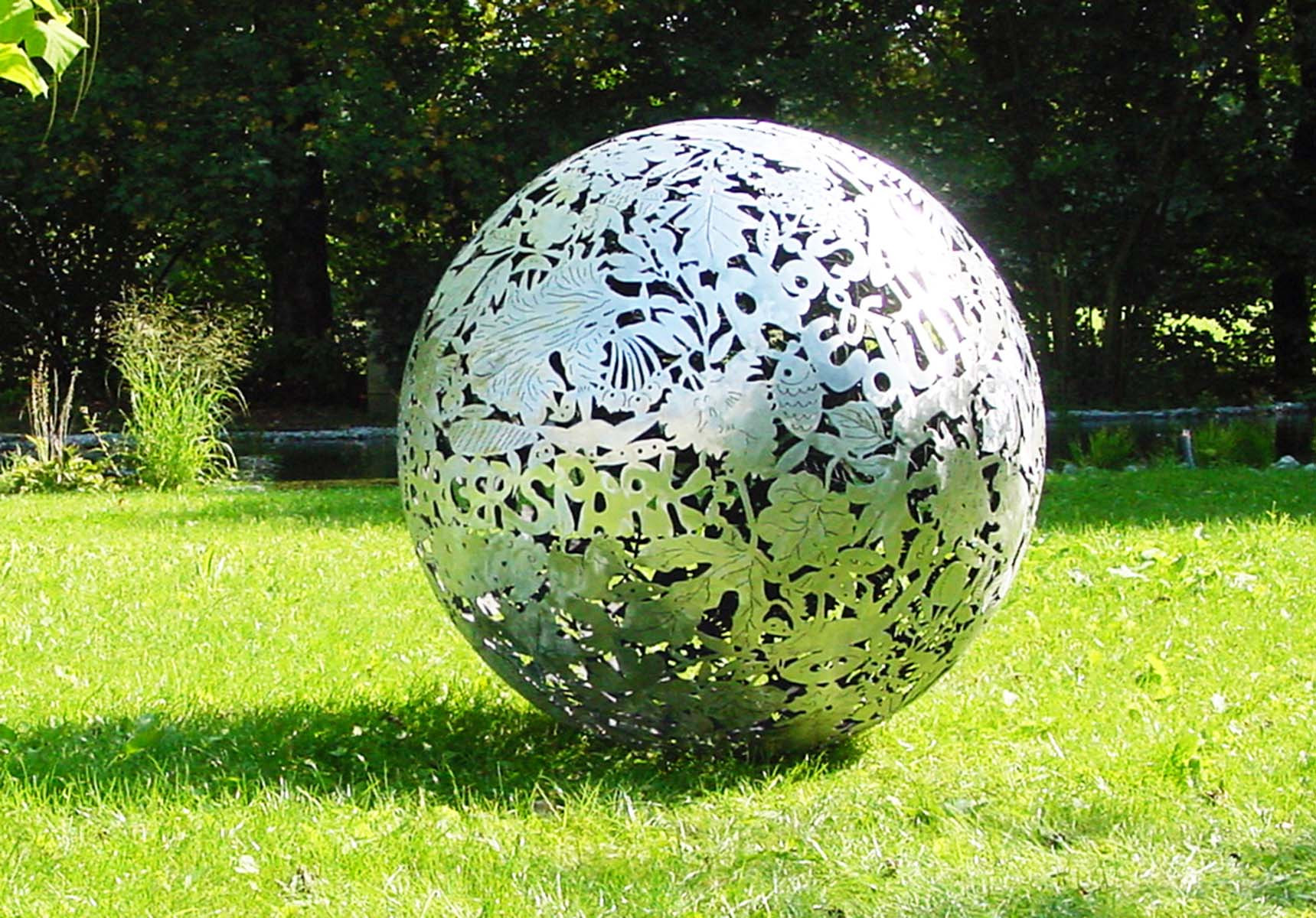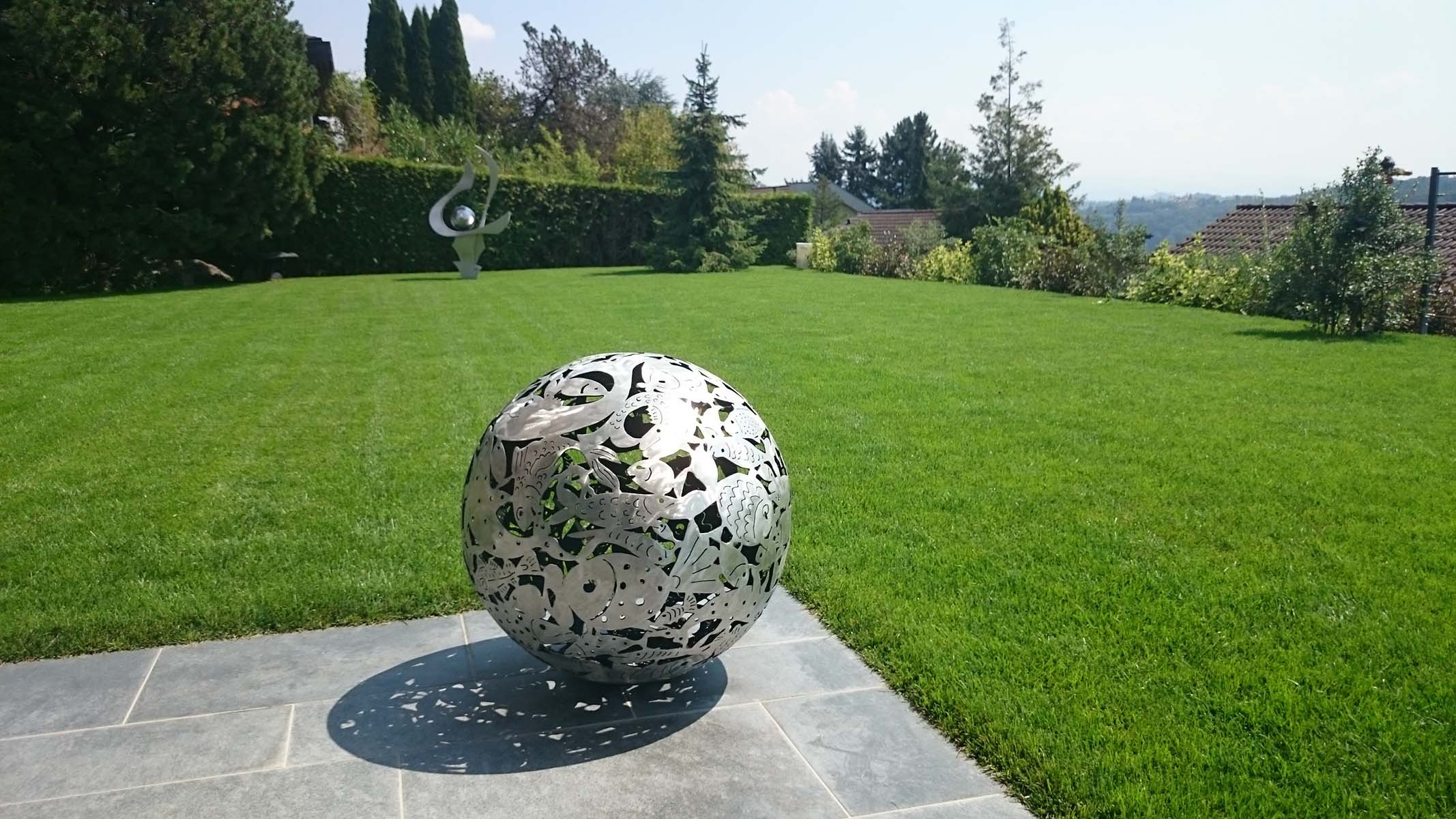 Bestimmen Sie Motiv, Text, Figürchen, Logo usw., welche ich mit dem Plasmaschneider aus vollen Stahl- oder Aluminiumkugeln in den Grössen bis 250 cm (im 10 cm Raster erhältlich) ausschneide. Dadurch wird jede Kugel zu einem einzigartigen und unverkennbaren Unikat. Sehr gerne helfe ich Ihnen bei der Gestaltung Ihrer eigenen personalisierten Wunsch-Kugel!