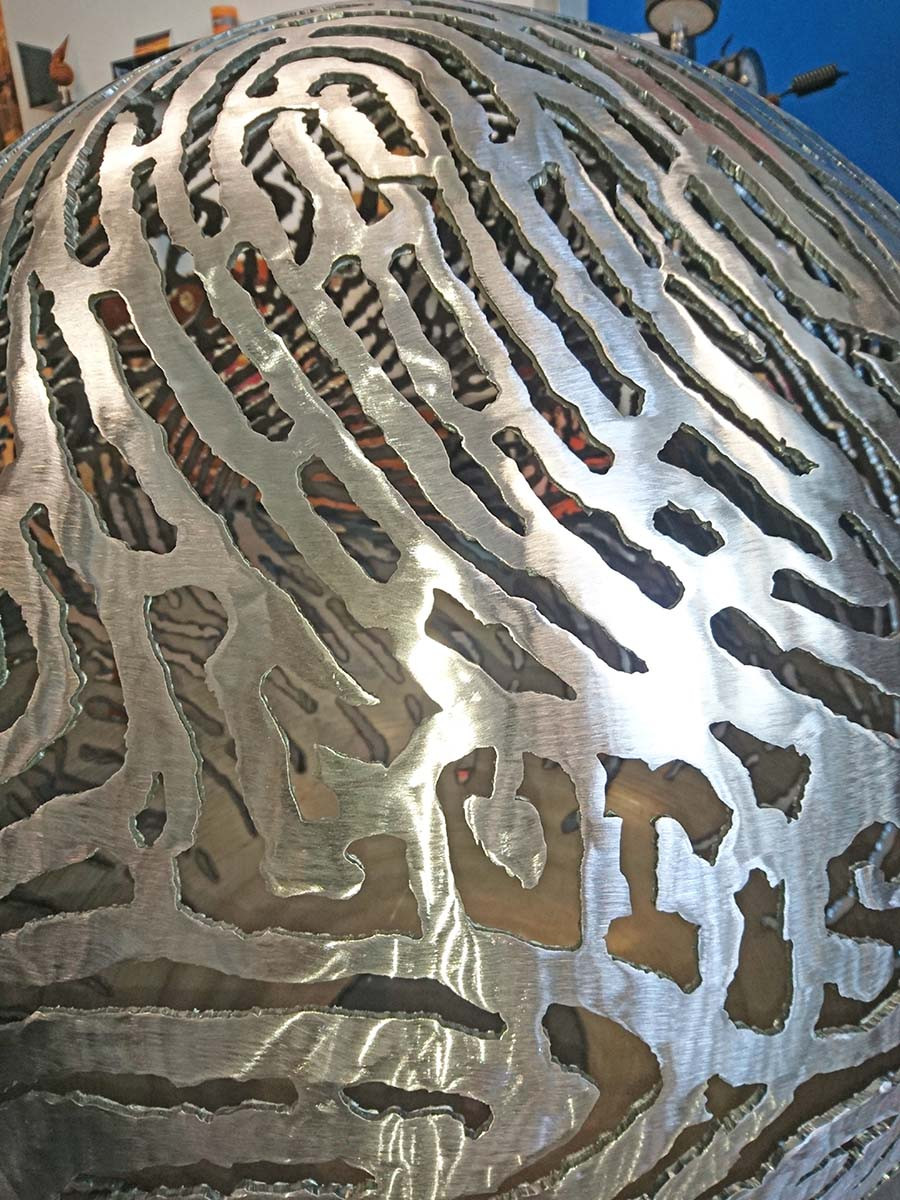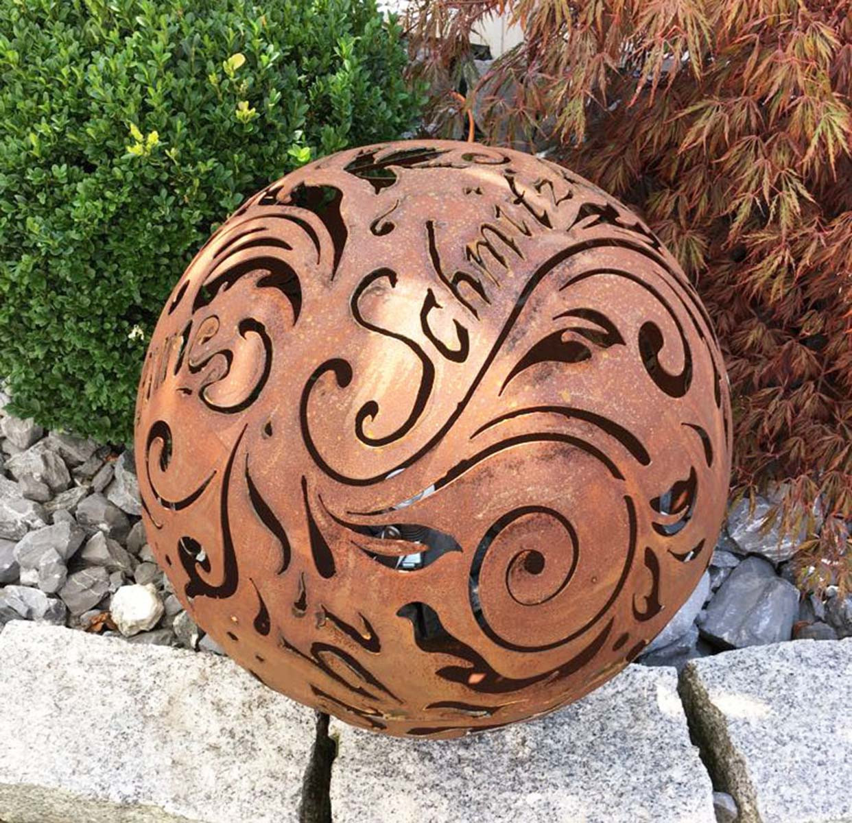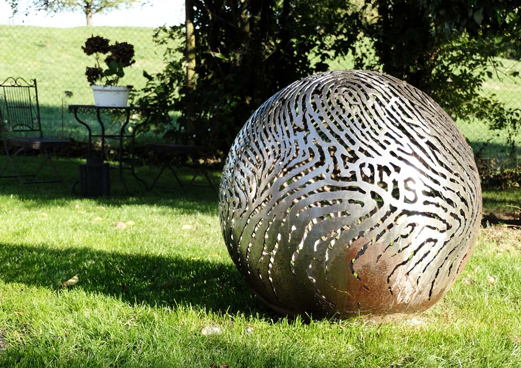 Bestimmen Sie Motiv, Text, Figürchen, Logo usw., welche ich mit dem Plasmaschneider aus vollen Stahl- oder Aluminiumkugeln in den Grössen bis 250 cm (im 10 cm Raster erhältlich) ausschneide. Dadurch wird jede Kugel zu einem einzigartigen und unverkennbaren Unikat. Sehr gerne helfe ich Ihnen bei der Gestaltung Ihrer eigenen personalisierten Wunsch-Kugel!